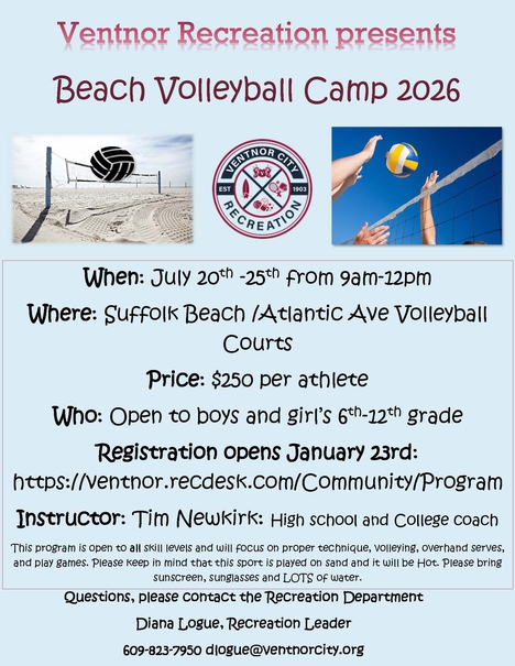 Registration can be completed using ventnor.recdesk.com beginning January 23, 2026.