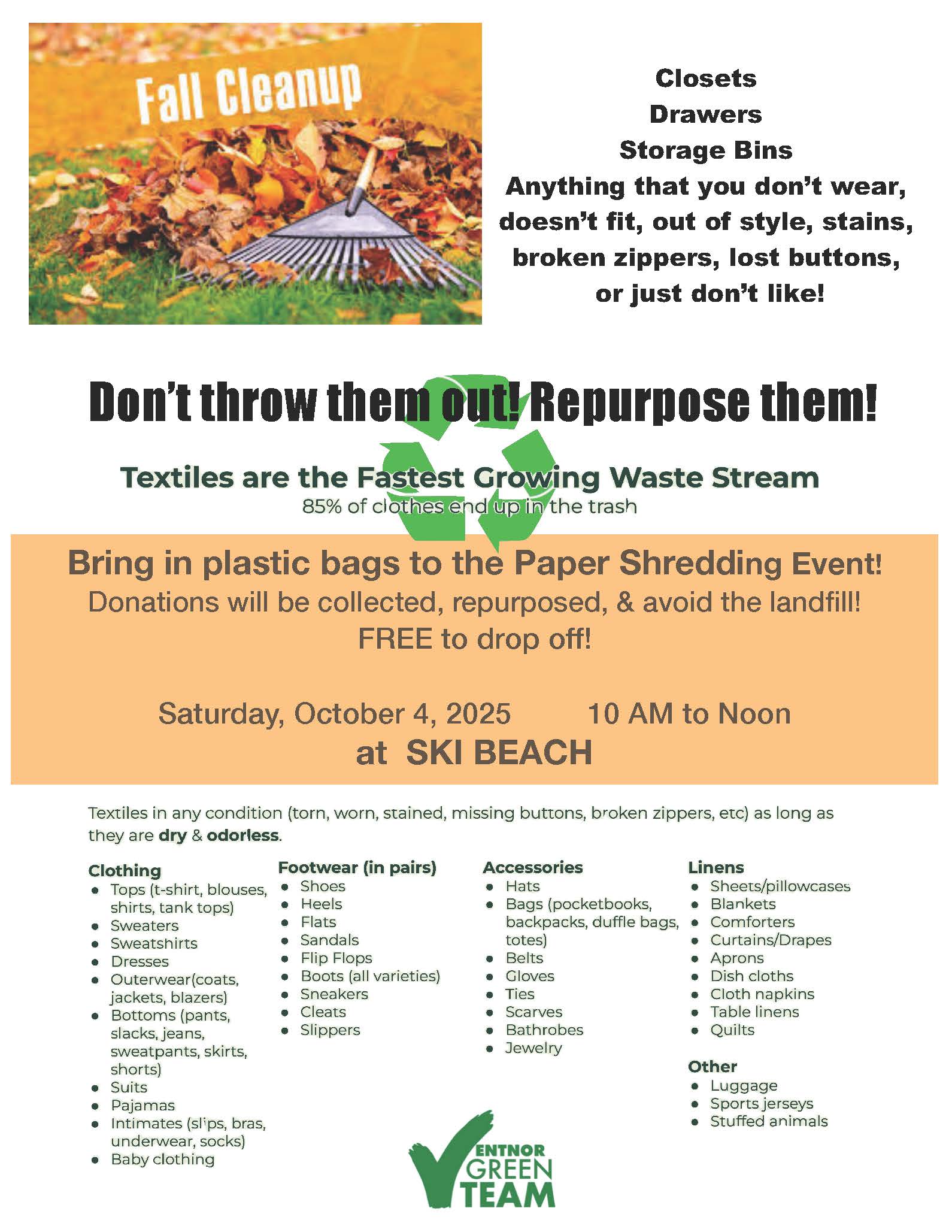 Ventnor residents can safely shred important documents. Pull up to the shred truck and your items will be unloaded for you. There is no need for you to exit your vehicle. There will also be a textile recycling collection.